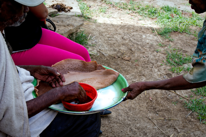 Impossible d’aller en Éthiopie sans goûter à l’injera. On peut être un peu dérouté par ces galettes à la consistance spongieuse et au goût légèrement acide, roulées sur elles-mêmes comme de petites serviettes. Mais passée la première surprise, on apprend à aimer le mélange de saveurs entre l’injera et les plats dans lesquels on la trempe. Attention toutefois, il existe des règles strictes pour déguster l’injera : ne manger que de la main droite et ne jamais se lécher les doigts.